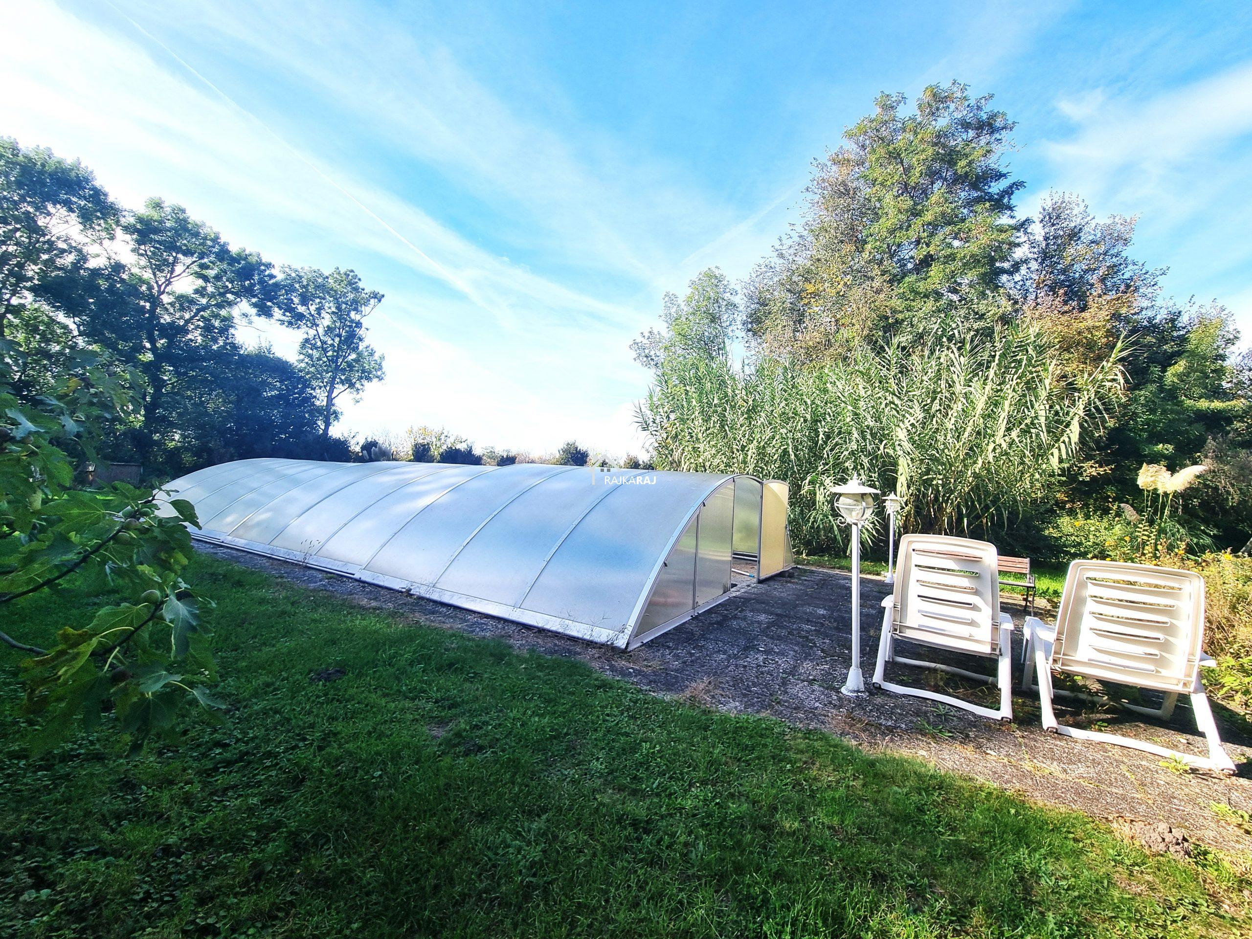 A birtokon a lakóházon kívül fedett medence, gyümölcsös, pagodás kiülő kemencével, nagyméretű fedett terasz valamint 360 m2-es gazdasági épület található.