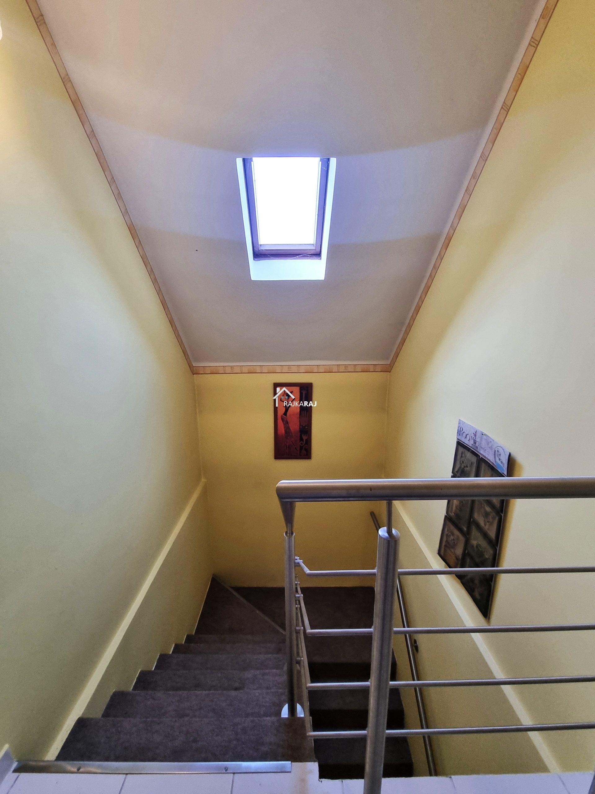 A HÁZ HELYISÉGEI (alsó szint) : előszoba, étkező, konyha, kamra, nappali, kádas fürdőszoba, wc külön helyiségben.