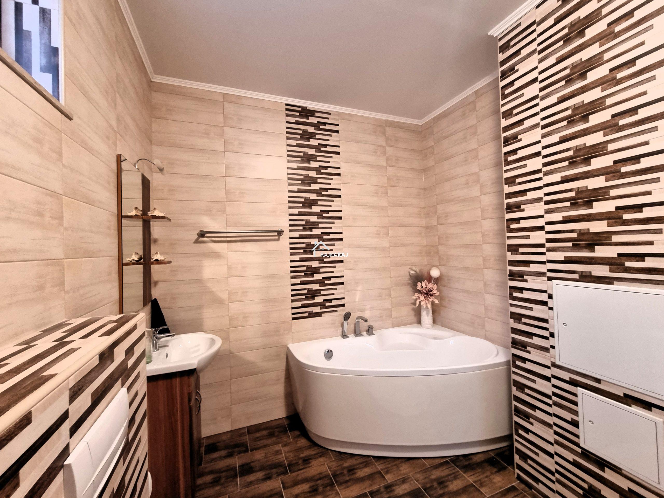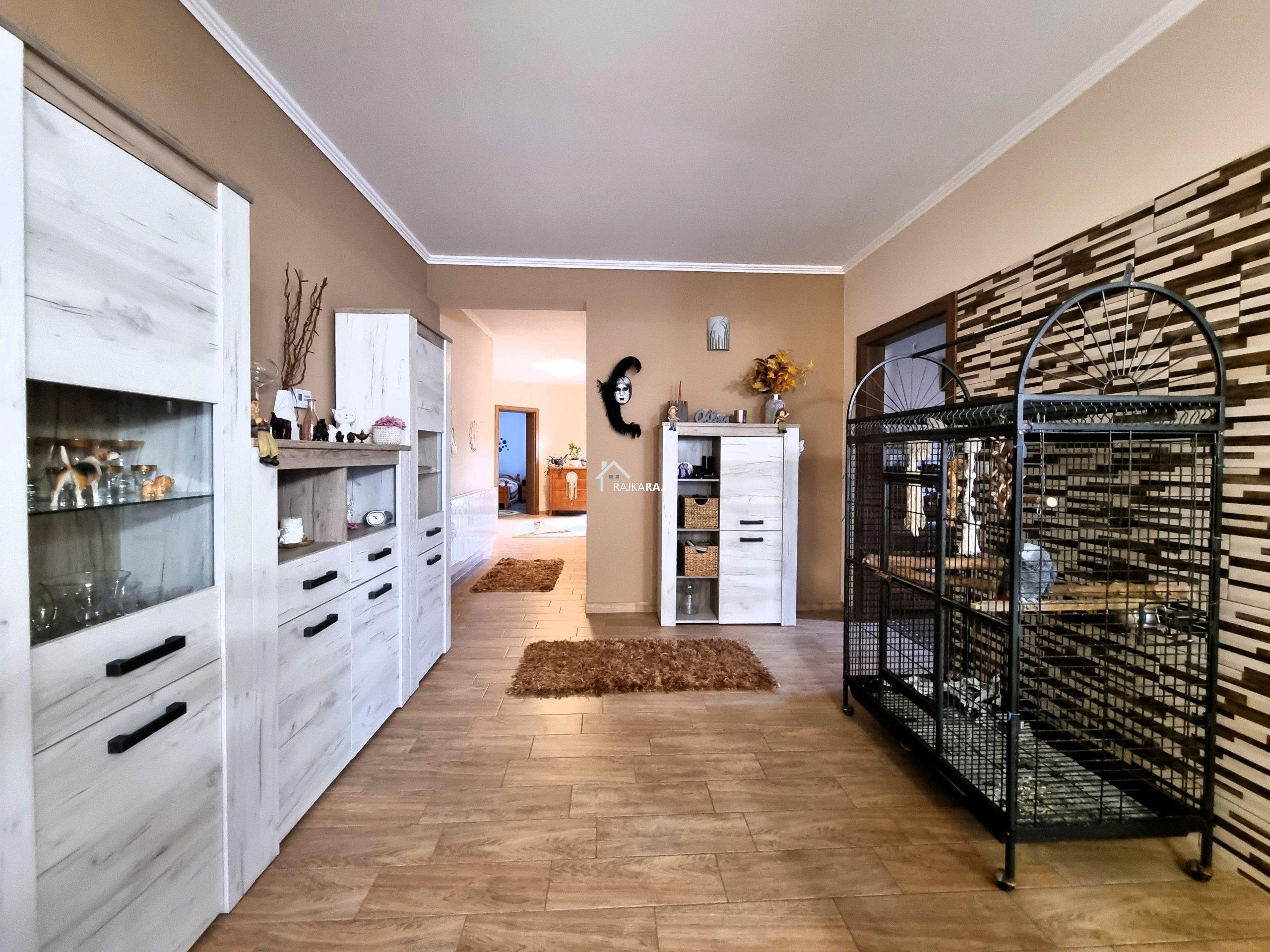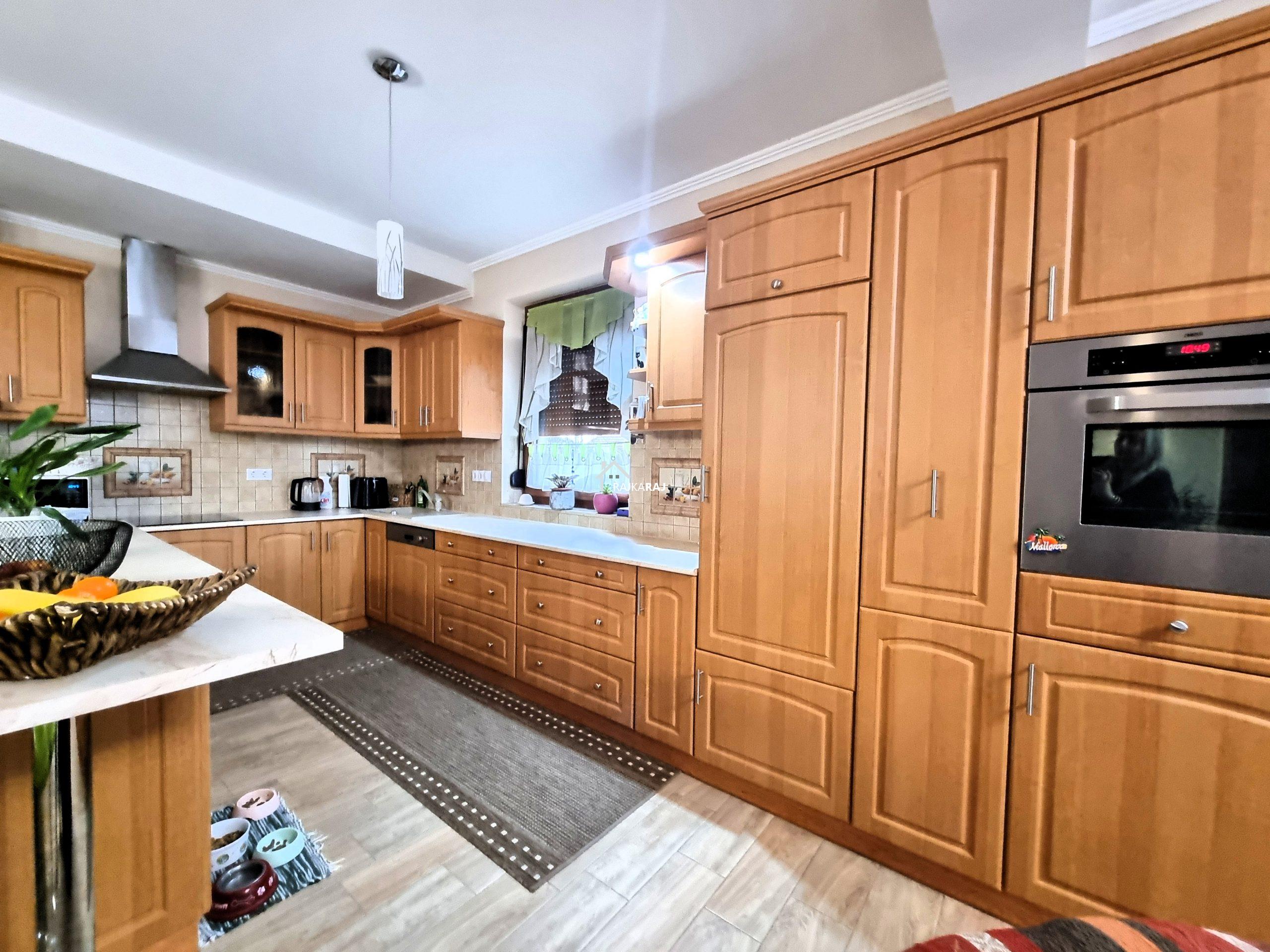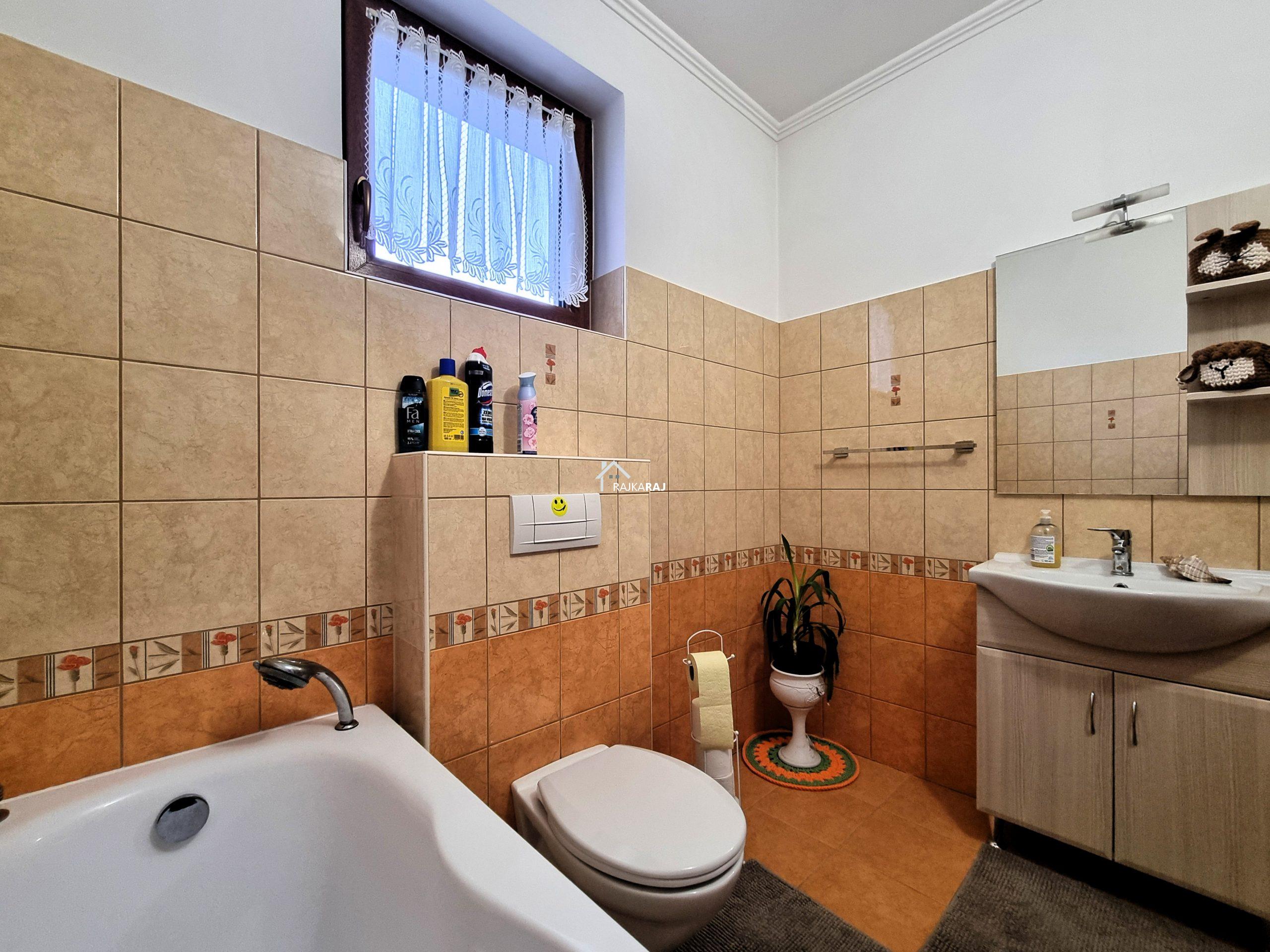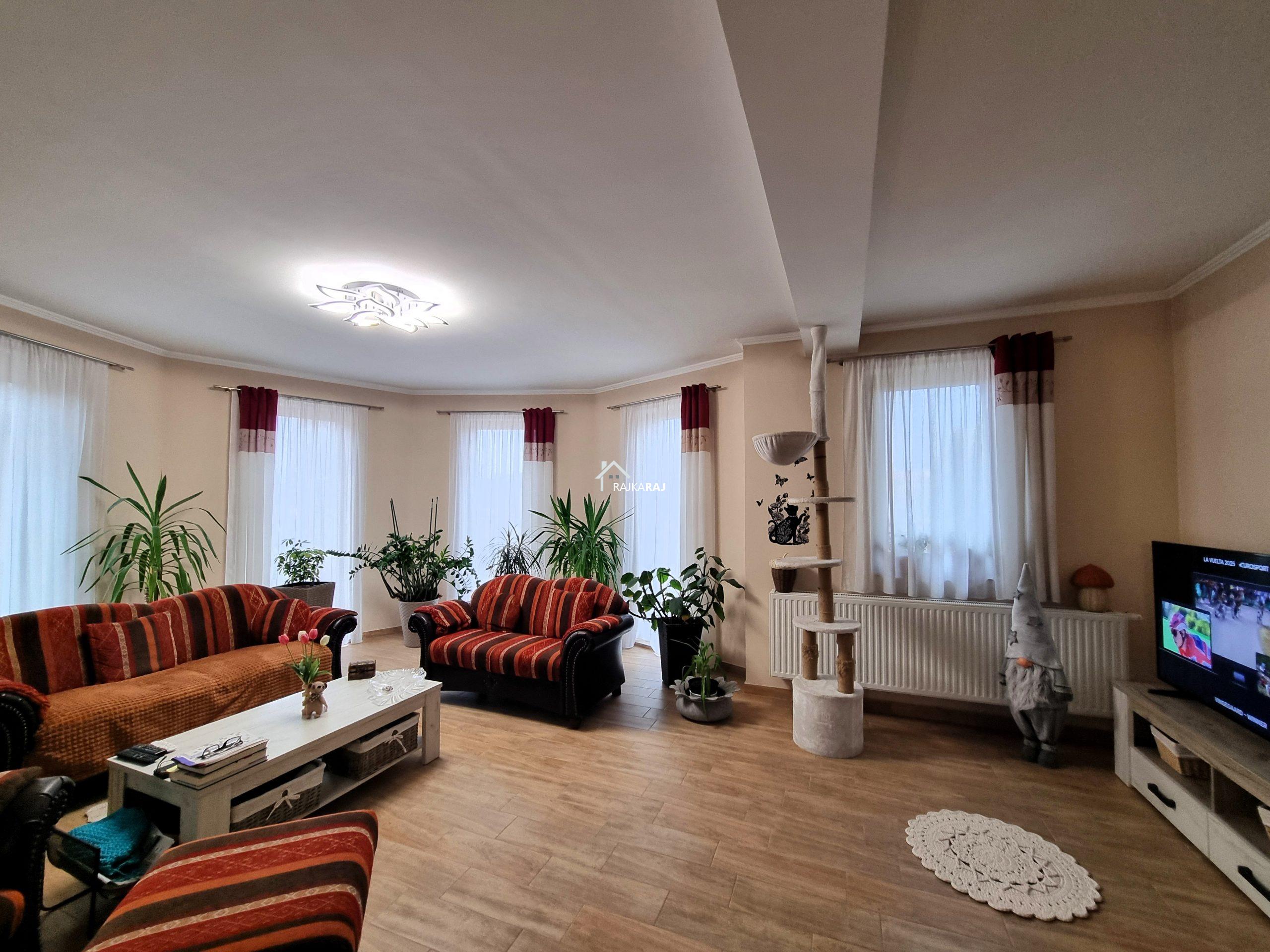 A LAKÓHÁZ HELYISÉGEI: előtér, csodálatos fényes és tágas amerikai konyhás nappali / étkező helyiség 73 m2-en,  4 szoba (4 x 14 m2-en). A szobákból 3 szoba elkülönül 1 pedig a nappaliból nyílik. Az ingatlannak 3 db fürdőszobája is van, melyből 2 közvetlenül szobából nyílik, ám az egyik fürdő 2 helyiség felől is megközelíthető. Ezekből az egyik kádas a másik pedig zuhanykabinos és mindegyikben wc is található. A különálló “fő” fürdőszoba kádas és épített zuhanykabinos szintén wc-vel.  Az ingatlanban 16 m2-es fűtött háztartási helyiség található mely a gépészetnek ad helyt de mosókonyhaként is hasznos. A hátsó közlekedőből 20 m2-es terasz nyílik.